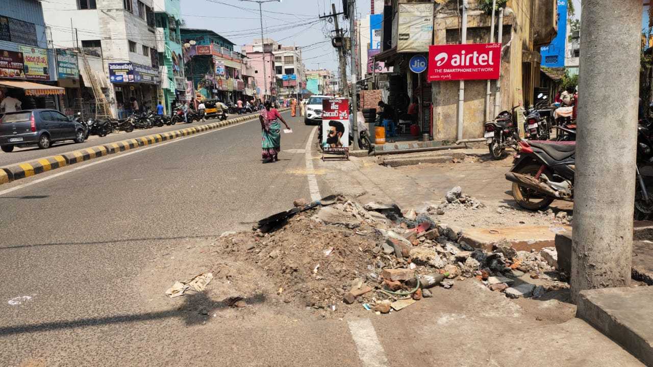Construction material wastage in the middle of the road becomes a barrier to people and vehicles. While traveling through Dhevichow it leads to road accidents. So, we need cleaner and safer roads please do it as much as possible it is.