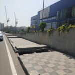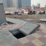 Manhole cover unclosed on the footpath on Hitech City Main Road