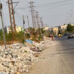 Construction material left beside the road at Gowlidoddi, Hyderabad