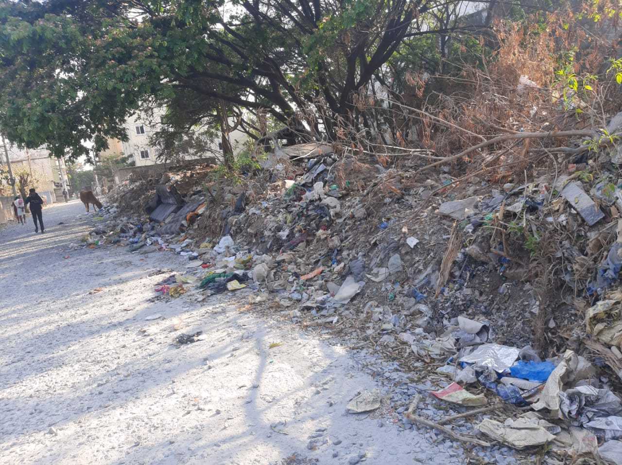 People are using the Pai Layout alley as a dump yard. They dispose domestic waste, plastic waste, construction waste and others. The unsanitary conditions of this lane worsen as there are dead animal carcasses too that are found in this dump yard. The trash here is regularly burnt in order to create space for more garbage.